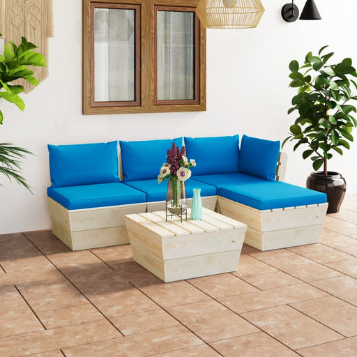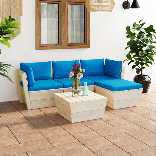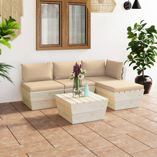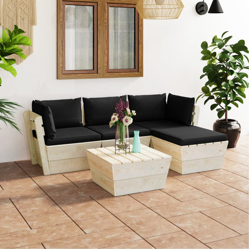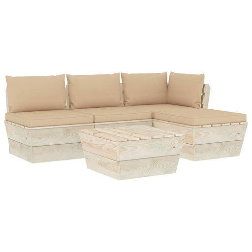 Diese 5-teilige Garten-Sofagarnitur aus Paletten mit Kissen ist eine ausgezeichnete Wahl, um sich zu entspannen und das Wetter zu genießen, ein Nic...