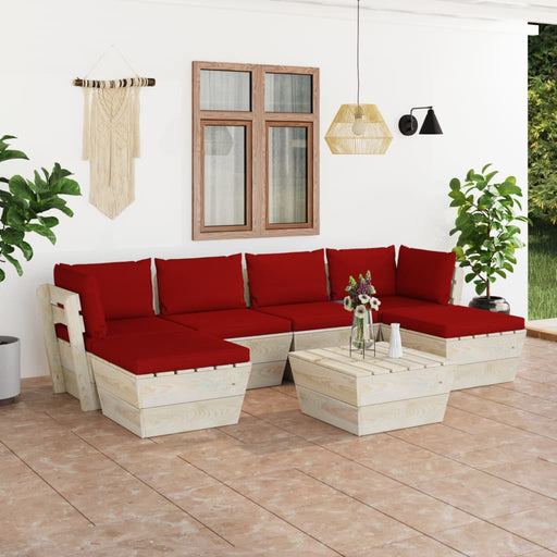 Diese 7-teilige Garten-Sofagarnitur aus Paletten mit Kissen ist eine ausgezeichnete Wahl, um sich zu entspannen und das Wetter zu genießen, ein Nic...
