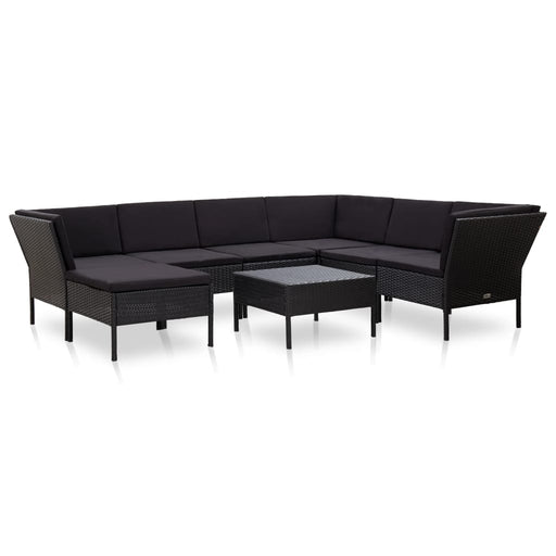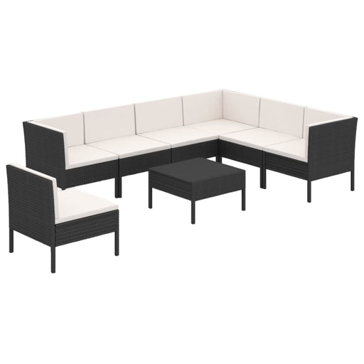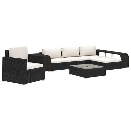 Dieses Poly Rattan Sofa-Set, bestehend aus 2 Sofa-Eckelementen, 4 Sofa-Mittelstücken, 1 Couchtisch, 1 Ottomane, 8 Rückenpolstern und 7 Sitzpolstern...