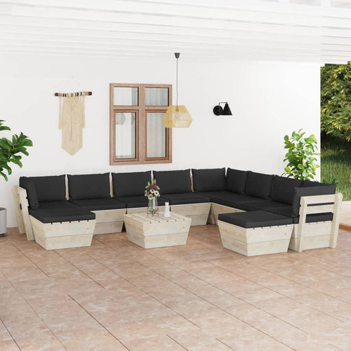 Diese 11-teilige Garten-Sofagarnitur aus Paletten mit Kissen ist eine ausgezeichnete Wahl, um sich zu entspannen und das Wetter zu genießen, ein Ni...