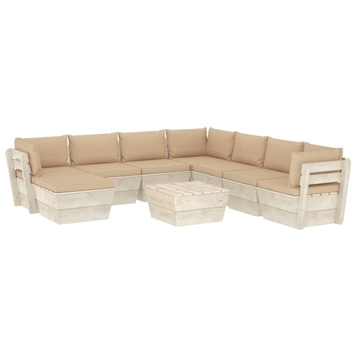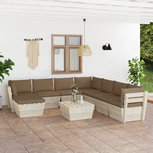 Diese 9-teilige Garten-Sofagarnitur aus Paletten mit Kissen ist eine ausgezeichnete Wahl, um sich zu entspannen und das Wetter zu genießen, ein Nic...