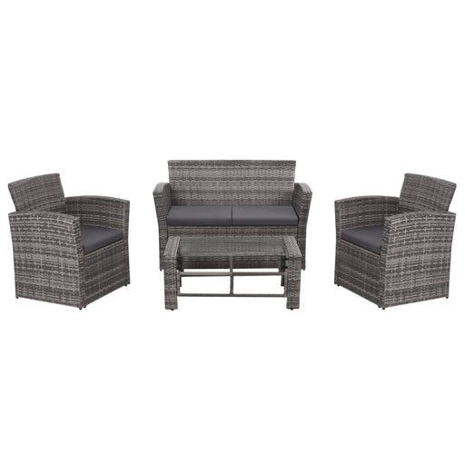 Diese Poly Rattan Sitzgarnitur, bestehend aus 1 2-Sitzer-Sofa, 2 Sesseln, 1 Couchtisch und 4 Sitzkissen, bietet einen stilvollen Sitzbereich für Ih...