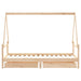 Mit diesem fantastischen Kinderbett aus Holz bietest du deinen Kleinen einen eigenen lustigen Platz! Massives Kiefernholz: Das Kinderbett ist aus massivem Kiefernholz gefertigt. Massives Kiefernholz ist ein wunderschönes Naturmaterial. Kiefernholz weist eine gerade Maserung auf und die Aststellen verleihen dem Material seine charakteristische, rustikale Optik.Robuste Latten: Das Kinderbett ist mit Holzlatten versehen, die für einen festen Halt, Belüftung und Stabilität sorgen.Design in Hausform: Dieses Kleinkinderbett weist ein durchdachtes Design mit einem Rahmen in Hausform auf, an dem du Bettvorhänge aufhängen kannst, um Privatsphäre für dein Kind zu schaffen.Mit Schubladen: Die mitgelieferten Schubladen bieten reichlich Platz für die Aufbewahrung von Kleinspielzeug, Kleidung und Bettzeug, um für Ordnung im Kinderzimmer zu sorgen.Durchdachtes Design: Dank der geringen Höhe des Einzelbettes können Kinder leicht ins Bett ein- und aussteigen.