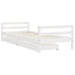 In diesem Kinderbett aus Holz genießt dein Kleiner eine erholsame Nachtruhe. Mit seinem eleganten und zeitlosen Design ist es die perfekte Wahl für deine Kinder! Massives Kiefernholz: Das Kinderbett ist aus massivem Kiefernholz gefertigt. Massives Kiefernholz ist ein wunderschönes Naturmaterial. Kiefernholz weist eine gerade Maserung auf und die Aststellen verleihen dem Material seine charakteristische, rustikale Optik.Robuste Latten: Das Kinderbett ist mit Holzlatten versehen, die für einen festen Halt, Belüftung und Stabilität sorgen.Mit Schubladen: Die mitgelieferten Schubladen bieten reichlich Platz für die Aufbewahrung von Kleinspielzeug, Kleidung und Bettzeug, um für Ordnung im Kinderzimmer zu sorgen.Praktisches Kopfteil und Fußteil: Dank des Kopf- und des Fußteils bleibt die Matratze stabil an ihrem Platz.Durchdachtes Design: Dank der geringen Höhe des Einzelbettes können Kinder leicht ins Bett ein- und aussteigen. Gut zu wissen:Bei diesem Bett ist keine Matratze im Lieferumfang enthalten. Wir bieten jedoch eine große Auswahl an Matratzen an. Du kannst in unserem Shop nach einer passenden Matratze suchen.