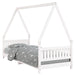 Mit diesem fantastischen Kinderbett aus Holz bietest du deinen Kleinen einen eigenen lustigen Platz! Massives Kiefernholz: Das Kinderbett ist aus massivem Kiefernholz gefertigt. Massives Kiefernholz ist ein wunderschönes Naturmaterial. Kiefernholz weist eine gerade Maserung auf und die Aststellen verleihen dem Material seine charakteristische, rustikale Optik.Robuste Latten: Das Kinderbett ist mit Holzlatten versehen, die für einen festen Halt, Belüftung und Stabilität sorgen.Design in Hausform: Dieses Kleinkinderbett weist ein durchdachtes Design mit einem Rahmen in Hausform auf, an dem du Bettvorhänge aufhängen kannst, um Privatsphäre für dein Kind zu schaffen.Durchdachtes Design: Dank der geringen Höhe des Einzelbettes können Kinder leicht ins Bett ein- und aussteigen.
