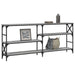 Dieser stilvolle Konsolentisch verleiht deinem Flur, Wohnzimmer oder Eingangsbereich einen Hauch von Eleganz. Langlebiges Material: Der Sofatisch ist aus Holzwerkstoff gefertigt. Holzwerkstoff ist ein Material von außergewöhnlicher Qualität mit glatter Oberfläche, das sich durch Festigkeit, Stabilität und Feuchtigkeitsbeständigkeit auszeichnet. Stabiler Rahmen: Der Stahlrahmen sorgt für Robustheit und Stabilität.Reichlich Stauraum: Der Dielentisch bietet reichlich Stauraum, um verschiedene Alltagssachen ordentlich und griffbereit aufzubewahren. Stabile Tischplatte: Die robuste Tischplatte des Flurtisches eignet sich hervorragend zum Abstellen von gerahmten Fotos, Topfpflanzen und anderen Dekoartikeln.Verstellbare Beine: Die sechs verstellbaren Beine mit Kunststoffkappen verleihen dem Flurtisch zusätzliche Stabilität, selbst auf unebenem Untergrund. Achtung:Um ein Umkippen zu vermeiden, sollte dieses Produkt mit der mitgelieferten Wandhalterung gesichert werden.