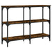 Dieser stilvolle Konsolentisch verleiht deinem Flur, Wohnzimmer oder Eingangsbereich einen Hauch von Eleganz. Langlebiges Material: Holzwerkstoff ist ein Material von außergewöhnlicher Qualität mit glatter Oberfläche, das sich durch Festigkeit, Stabilität und Feuchtigkeitsbeständigkeit auszeichnet. Aus Holzwerkstoff gefertigt, lässt sich der Sofatisch leicht reinigen.Reichlich Stauraum: Der Dielentisch bietet viel Stauraum, um Zeitschriften, Bücher, Dekoartikel und andere Alltagssachen ordentlich und griffbereit aufzubewahren.Verstellbare Beine: Die sechs verstellbaren Beine mit Kunststoffkappen verleihen dem Flurtisch zusätzliche Stabilität, selbst auf unebenem Untergrund.Metallrahmen: Der Metallrahmen verleiht deinem Interieur eine industrielle Note und gewährleistet gleichzeitig Haltbarkeit und Stabilität. Achtung:Um ein Umkippen zu vermeiden, sollte dieses Produkt mit der mitgelieferten Wandhalterung gesichert werden.
