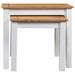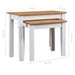 Bringen Sie einen Hauch von rustikalem Charme in Ihre Wohnungseinrichtung mit diesen markanten und stilvollen Satztischen! Bestehend aus 2 Beistelltischen aus Holz in verschiedenen Größen, wird dieses Satztisch-Set definitiv eine großartige Ergänzung zu Ihrer Wohneinrichtung sein. Das Satztischset besteht aus massivem Kiefernholz und zeichnet sich durch Langlebigkeit und Robustheit aus. Das Tischset ist vollständig handgefertigt und jeder Schritt des Prozesses wird mit größter Sorgfalt ausgeführt, sei es Polieren, Malen oder Lackieren. Das unverwechselbare Design erleichtert das Stapeln bei Nichtgebrauch der Tische und spart somit Platz. Zusätzlich können diese Satztische auch als Kaffeetische, Couchtische, Wohnzimmertische, Nachttische usw. verwendet werden. Im Lieferumfang sind 2 Satztische enthalten.