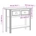Dieser klassische Konsolentisch ist eine praktische und dekorative Ergänzung zu deiner Wohnungseinrichtung. Massives Kiefernholz: Massives Kiefernholz ist ein schönes Naturmaterial. Kiefernholz weist eine gerade Maserung auf und die Aststellen verleihen dem Material seine charakteristische, rustikale Optik. Aus massivem Kiefernholz gefertigt, ist der Sofatisch robust und stabil.Reichlich Stauraum: Dieser praktische Dielentisch verfügt über 2 Schubladen und eine untere Ablage, die reichlich Platz für deine Bücher, Pflanzen, Aufbewahrungsboxen, Dekorationen usw. bieten.Präsentation: Du kannst auch deine Lieblingsfotos, Dekoartikel oder Blumen auf dem Beistelltisch zur Schau stellen, um deinen Wohnraum schöner zu gestalten.Metallgriffe: Die Metallgriffe erleichtern das Öffnen und Schließen der Schubladen und tragen zur ansprechenden Optik des Flurtisches bei.Charmanter französischer Stil: Verleihe deiner Inneneinrichtung eine inspirierende französische Note! Achtung:Um ein Umkippen zu vermeiden, sollte dieses Produkt mit der mitgelieferten Wandhalterung gesichert werden.