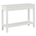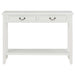 Mit unserem klassischen Konsolentisch bringen Sie einen Hauch von Eleganz in Ihre Inneneinrichtung! Dieser Konsolentisch aus MDF, massivem Kiefernholz und einzigartigem Paulownia-Furnier ist eine hervorragende Ergänzung für Ihr Interieur. Er kann auch als Beistelltisch oder Sideboard verwendet werden. Die stabile MDF-Tischplatte eignet sich ideal, um darauf dekorative Gegenstände wie Obstkörbe oder Blumenvasen zu stellen. Die Beine aus massivem Kiefernholz garantieren Stabilität und Langlebigkeit, sodass Sie sich jahrelang an diesem Möbelstück erfreuen können. Darüber hinaus lassen sich in den 2 Schubladen kleinere Gegenstände organisiert und griffbereit aufbewahren. Der Regalboden bietet einen zusätzlichen Platz für die Aufbewahrung Ihrer Schuhe und anderer Gegenstände.