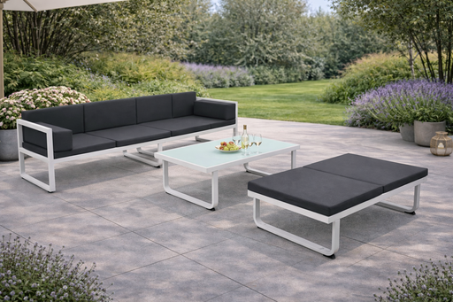 Beschreibung Dieses Alu-Gartenlounge-Set kombiniert Stil und Funktionalität. Es wird das absolute Highlight in Ihrem Garten oder auf Ihrer Terrasse...