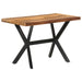 Dieser Holz-Esstisch im Industrial Style stellt eine besondere Bereicherung für jede Küche und jedes Esszimmer dar. Der Esstisch ist aus massivem Akazien- und Kautschukholz gefertigt und mit honigfarbener Lasur behandelt. Der Tisch ist vollständig handgefertigt und jeder Schritt des Herstellungsprozesses wird mit größter Sorgfalt ausgeführt, sei es das Polieren, Anstreichen oder Lackieren. Das Stahlgestell vervollständigt den Industrie-Look und trägt zusammen mit dem Stahlkreuz zur robusten Konstruktion bei. Wichtiger Hinweis: Die Farben können von Stück zu Stück variieren, was jedes Möbelstück einzigartig macht; die Lieferung erfolgt nach dem Zufallsprinzip.