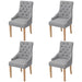 Diese hochwertigen Esszimmerstühle mit Armlehnen haben ein luxuriöses und anmutiges Design und werden Ihrer Inneneinrichtung einen Hauch von Stil und Eleganz verleihen. Die Stühle sind ideal für Mahlzeiten oder beim Lesen und Entspannen im Wohnzimmer. Dank der Eichenholzbeine sind die Stühle langlebig, robust und stabil. Die dick gepolsterten Sitze und Rückenlehnen tragen zu ihrem Sitzkomfort bei. Die Lieferung umfasst 4 Esszimmerstühle.