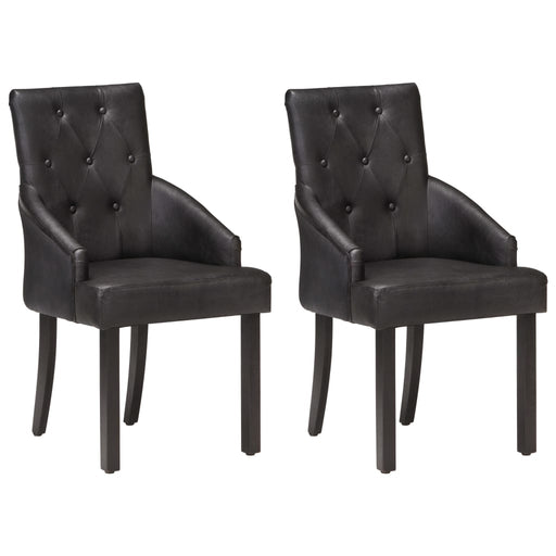 Dieses Set aus 2 bequemen Esszimmerstühlen hat ergonomisch geformte Sitze und Rückenlehnen. Die Stühle sind mit pflegeleichtem, hochwertigem Kunstl...