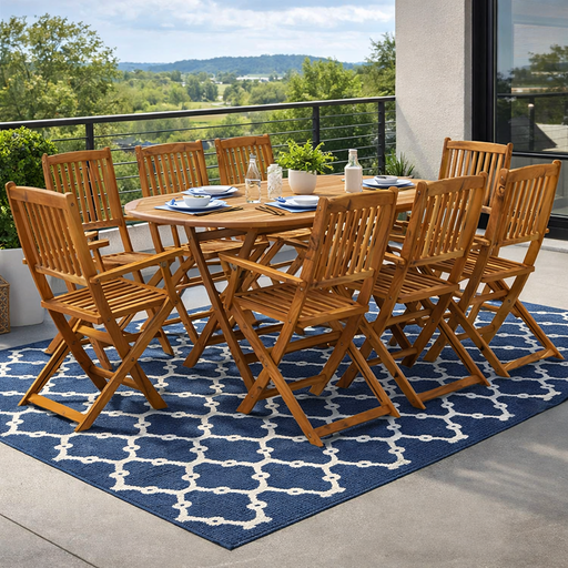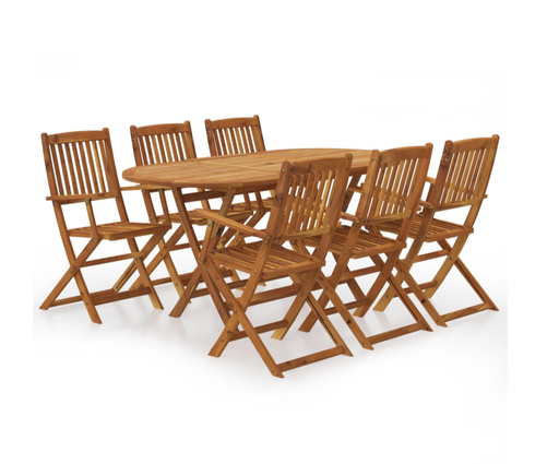 Beschreibung Diese stilvolle und moderne Essgruppe aus Holz besteht aus 1 ovalen Tisch und 6 Klappstühlen und ist eine gute Wahl für Mahlzeiten unt...