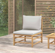 Genießen Sie eine Tasse Kaffee oder Tee bei schönem Wetter in Ihrem Außenbereich mit diesem eleganten Garten-Lounge-Set aus Bambus! Langlebiges Material: Bambus ist für seine Flexibilität und Festigkeit bekannt. Bambus-Möbel sind eine gute Wahl, wenn Sie nach robusten Gartenmöbeln aus natürlichen Materialien suchen. Bequemes Sitzgefühl: Dank der Rückenlehne und der Armlehnen bietet das Gartensofa höchsten Sitzkomfort. Zum hohen Sitzkomfort tragen auch die dick gepolsterten Sitz- und Rückenkissen bei. Praktischer Tisch: Der robuste Tisch bietet den perfekten Platz für Speisen, Getränke und verschiedene Dekoartikel. Modularer Aufbau: Das Loungemöbel-Set ist flexibel und leicht umzustellen, sodass Sie es mit anderen modularen Sofateilen im Webshop kombinieren können, um Ihr persönliches Outdoor-Lounge-Set zu erstellen! Hinweis: Damit Ihre Gartenmöbel lange schön bleiben, empfehlen wir Ihnen, sie mit einer wasserdichten Hülle zu schützen. Gut zu wissen: Um die Montage so einfach wie möglich zu machen, wird jedes Produkt mit einer Anleitung geliefert.