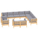 12-tlg. Garten-Lounge-Set mit Grauen Kissen Massivholz Kiefer
