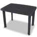 Diese witterungsbeständige Sitzgarnitur ist eine hervorragende Wahl für Mahlzeiten unter freiem Himmel - egal ob im Garten, Hof oder auf dem Campingplatz. Im Gartentisch befindet sich ein Schirmloch, sodass Sie ganz einfach einen Sonnenschirm anbringen und so für kühlenden Schatten an heißen Sommertagen sorgen können. Die Rückenlehne der Stühle ist in 4 Positionen verstellbar, sodass Sie jederzeit eine bequeme Position einnehmen können. Wenn nicht in Gebrauch, können die Stühle platzsparend zusammengeklappt werden. Das Set ist aus langlebigem Kunststoff hergestellt und somit nicht nur witterungsunempfindlich, sondern auch leicht zu reinigen. Dank geringem Eigengewichts kann diese Essgruppe einfach umherbewegt werden. Lieferung beinhaltet 1 Tisch und 2 Klappstühle.