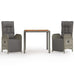 3-tlg. Garten-Essgruppe mit Kissen Grau Poly Rattan