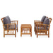 Das hölzerne Garten-Lounge-Set bringt einen Vintage-Look in Ihren Garten, Ihre Terrasse oder andere Außenbereiche! Das Gartenmöbel-Set besteht aus einer massiven Akazienholzkonstruktion mit Ölfinish und ist somit stabil und langlebig. Die dicken Sitz- und Rückenkissen sorgen für ein weiches Sitzgefühl. Dank der Massivholz-Tischplatte mit Lattendesign bietet der Couchtisch Platz für Snacks, Obstkörbe, Dekorationsgegenstände und andere wichtige Sachen. Die leicht gebogene Rückenlehne und die Armlehnen erhöhen den Sitzkomfort der Bank und des Stuhls. Wichtiger Hinweis: Farben und Maserung variieren von Möbelstück zu Möbelstück, was jedes Sideboard einzigartig macht. Die Lieferung erfolgt nach dem Zufallsprinzip.