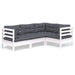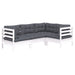 4-tlg. Garten-Lounge-Set mit Kissen Weiß Kiefernholz