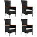 5-tlg. Garten-Essgruppe mit Kissen Schwarz Poly Rattan