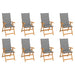 Dieses stilvolle Gartenstuhl-Set mit Kissen ist aus Teakholz gefertigt und ist eine große Bereicherung für Ihren Garten oder Ihre Terrasse und lädt zum netten Plaudern mit der Familie und Freunden ein. Zudem können Sie auf diesen Gartenstühlen das wohlig warme Wetter genießen. Der klappbare Liegestuhl aus Holz weist ein klassisches Design auf. Das für diese Teakmöbel verwendete Teakholz ist technisch getrocknet und anschließend fein geschliffen worden, um ein sehr glattes Erscheinungsbild zu erhalten. Teak ist für seine außergewöhnliche Festigkeit und Witterungsbeständigkeit geschätzt und eignet sich daher weitaus besser für Gartenmöbel als jede andere Holzart. Teakholz ist die perfekte Wahl, wenn Sie sich langlebige Gartenmöbel anschaffen möchten. Die Rückenlehne des Sessels lässt sich in 7 Einstellungen verstellen, sodass Sie immer die bequemste Position finden. Es ist außerdem leichtgewichtig, wodurch es einfach zu umstellen ist. Der Esszimmerstuhl kann bei Nichtgebrauch platzsparend zusammengeklappt werden. Darüber hinaus sorgen die im Lieferumfang enthalten Kissen für zusätzlichen Komfort. Jede Auflage hat ein Gummiband und zwei Bänder-Sets, um es fest am Stuhl zu befestigen. Hinweis: Um die Lebensdauer Ihrer Gartenmöbel zu verlängern, empfehlen wir Ihnen, diese regelmäßig zu reinigen und bei Nichtgebrauch im Freien abzudecken.Reinigung: Verwenden Sie eine milde SeifenlösungLagerung: Wenn möglich, an einem kühlen, trockenen Ort im Innenbereich lagern. Wenn das Produkt im Freien gelagert wird, schützen Sie es mit einer wasserdichten Abdeckung. Wischen und trocknen Sie das überschüssige Wasser oder den Schnee nach Regen oder Schneefall von der ebenen Fläche. Sorgen Sie für eine ausreichende Luftzirkulation, um feuchtigkeitsbedingte Schäden zu vermeiden.
