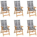 Gartenstühle 6 Stk. Graue Karomuster-Kissen Massivholz Teak