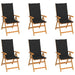Gartenstühle 6 Stk. mit Schwarzen Kissen Massivholz Teak