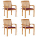 Stapelbare Gartenstühle mit Kissen 4 Stk. Massivholz Teak