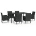 7-tlg. Garten-Essgruppe mit Kissen Schwarz Poly Rattan