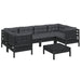 7-tlg. Garten-Lounge-Set mit Kissen Schwarz Kiefernholz