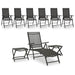 Mit seinem stilvollen und zeitlosen Design bietet dieses Garten-Lounge-Set alles, was Sie brauchen, um sich im Freien zu entspannen. Dieses Gartenmöbel-Set besteht aus Aluminium-Gestellen. Es kennzeichnet sich daher durch ein geringes Eigengewicht und lässt sich ganz einfach transportieren. Mit atmungsaktiven Textilene versehen, sind die Stühle ganz bequem. Dank der 7-fach verstellbaren Rückenlehne werden Sie auch stets die bequemste Position finden. Die Hocker bieten einen ausgezeichneten Platz zum Hochlegen der Füße, können aber auch als zusätzliche Sitzgelegenheiten für Kinder dienen. Bei Nichtgebrauch lässt sich jedes Stück einfach und platzsparend zusammenklappen. Hinweis: Um die Lebensdauer Ihrer Gartenmöbel zu verlängern, empfehlen wir Ihnen, diese regelmäßig zu reinigen und bei Nichtgebrauch im Freien abzudecken.Reinigung: Verwenden Sie eine milde SeifenlösungLagerung: Wenn möglich, an einem kühlen, trockenen Ort im Innenbereich lagern. Wenn das Produkt im Freien gelagert wird, schützen Sie es mit einer wasserdichten Abdeckung. Wischen und trocknen Sie das überschüssige Wasser oder den Schnee nach Regen oder Schneefall von der ebenen Fläche. Sorgen Sie für eine ausreichende Luftzirkulation, um feuchtigkeitsbedingte Schäden zu vermeiden.
