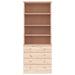Dieses Bücherregal aus Holz bietet eine ideale Lösung für die ordentliche Aufbewahrung deiner Bücher und verleiht deiner Einrichtung einen Hauch von rustikalem Charme. Kiefern-Massivholz: Massives Kiefernholz ist ein wunderschönes Naturmaterial. Kiefernholz hat eine gerade Maserung und die Aststellen verleihen dem Material sein typisches, rustikales Aussehen. Aus Kiefer-Massivholz gefertigt, ist das Bücherregal langlebig und robust.Reichlich Stauraum: Dieser Schrank verfügt über 4 offene Fächer und 4 Schubladen, die reichlich Platz bieten, um deine Sammlung von Büchern, Zeitschriften und Dokumenten ordentlich und griffbereit aufzubewahren.Vielseitig: Dieses multifunktionale Bücherregal kann als Aufbewahrungsregal oder Wohnzimmerschrank verwendet werden und wird unterschiedlichen Bedürfnissen gerecht.Pflegeleicht: Das Regal lässt sich leicht mit einem feuchten Tuch reinigen und erfordert wenig Pflege.Unbehandelte Oberfläche: Da der Schrank aus massivem, unbehandeltem Kiefernholz gefertigt ist, kannst du seine natürliche Farbe beibehalten, ihn aber auch nach Belieben anstreichen oder lackieren. Achtung:Um ein Umkippen zu vermeiden, sollte dieses Produkt mit der mitgelieferten Wandhalterung gesichert werden.
