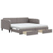 Dieses ausziehbare 2-in-1-Tagesbett, das sowohl als Sofa als auch als Bett dient, ist eine praktische und auffällige Ergänzung zu deinem Wohn- oder Schlafzimmer. Vielseitiges Tagesbett: Das Schlafsofa fungiert tagsüber als Sofa und lässt sich nachts durch Ausziehen des Rollkastens leicht in ein Doppelbett verwandeln - eine praktische Lösung, um Gästen einen bequemen Schlafplatz zu bieten und den Platz zu maximieren.Reichlich Stauraum: Dieses Gästebett verfügt über zwei Schubladen mit Rollen, die reichlich Stauraum für Kleidung, Socken, Spielzeug, Kissen usw. bieten.Komfortable Schaumstoffmatratze: Dieses Schlafbett wird samt zwei Schaumstoffmatratzen geliefert, die für maximalen Halt und optimalen Komfort sorgen.Strapazierfähiger Stoff und robuste Konstruktion: Dieses Tagesbettsofa besitzt einen stabilen Rahmen aus Holz und Metall und ist mit strapazierfähigem und bequemem Stoff bezogen.