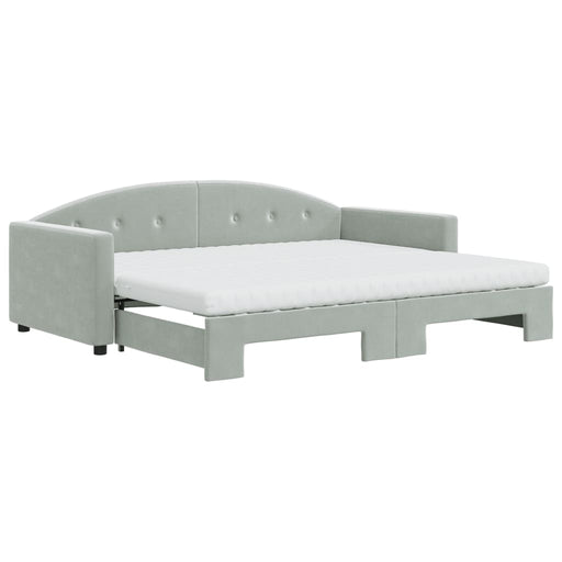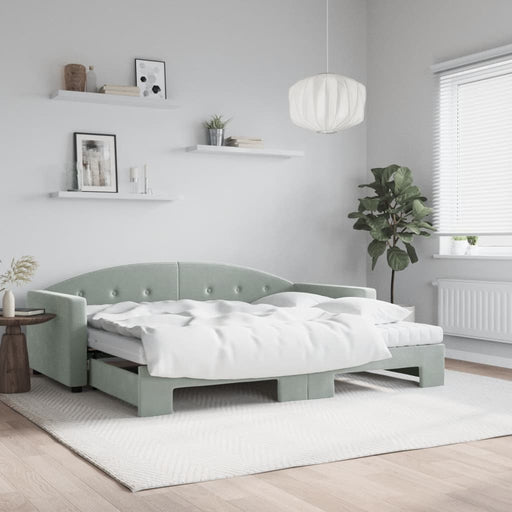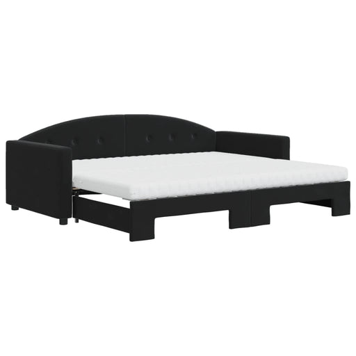 Dieses ausziehbare 2-in-1-Tagesbett mit Matratzen, das sowohl als Sofa als auch als Bett dient, ist eine praktische und auffällige Ergänzung zu dei...