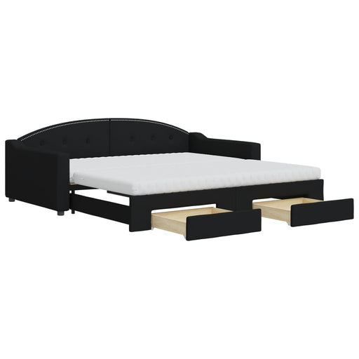 Dieses ausziehbare 2-in-1-Tagesbett mit Schubladen, das sowohl als Sofa als auch als Bett dient, ist eine praktische und auffällige Ergänzung zu de...
