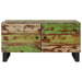 Auf der Suche nach einem optisch ansprechende Couchtisch für dein Wohnzimmer? Dann ist dieser Couchtisch aus Holz eine perfekte Wahl, um deinem Interieur eine einzigartige Note zu verleihen. Massives Altholz: Recyceltes Massivholz besteht aus wiederverwendeten Holzarten wie Teak, Mango, Kiefer und Buche. Dieses Holz wird aus alten Gebäuden wie Fabriken, Schuppen und Booten recycelt. Dies macht es zu einer sehr umweltfreundlichen Option im Möbelbau. Da jedes Stück handgefertigt ist, variieren die Farben für jedes Produkt. Dabei kann die Oberfläche Blau-, Grün- und sogar Orange-, Rot- oder Rosatöne aufweisen.Viel Stauraum: Dieser Couchtisch verfügt über zwei Fächer, die reichlich Stauraum bieten, um wichtige Sachen ordentlich und griffbereit aufzubewahren.Starke Tischplatte: Die Tischplatte des Wohnzimmertisches bietet eine sichere Ablagefläche für Snacks, Getränke, Vasen, Obstschalen oder andere dekorative Gegenstände.Praktische Türen: Hinter den Türen dieses Couchtisches kannst du verschiedene wichtige Sachen staubfrei aufbewahren und verstecken. Hinweis:Jedes Produkt wird mit einer Montageanleitung in der Verpackung für eine einfache Montage geliefert.Die Farben können von Artikel zu Artikel variieren, wodurch jedes Möbelstück einzigartig ist. Die Lieferung erfolgt nach dem Zufallsprinzip, wodurch die Exklusivität und Individualität deines Produkts gewährleistet wird.