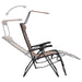 Dieser Liegestuhl ist eine perfekte Kombination aus Stil und Funktionalität; somit eignet sie sich hervorragend für Ihre Terrasse, Ihren Garten, Balkon oder andere Innen- und Außenbereiche. Der Gartenstuhl hat ein robustes Stahlgestell und einen pflegeleichten, wetterfesten Sitz und Rückenlehne aus Textilene, so dass Sie sich viele Jahre an diesen Outdoor-Stuhl erfreuen können. Die gepolsterte Kopfstütze ist weich und bequem. Mit seinem Sonnendach spendet der Liegestuhl kühlen Schatten in der Sonne. Da der Strandstuhl außerdem leicht ist, kann er leicht umstellt und bei Nichtgebrauch platzsparend zusammengeklappt werden. HinweisUm die Lebensdauer Ihrer Gartenmöbel zu verlängern, empfehlen wir Ihnen, diese regelmäßig zu reinigen und bei Nichtgebrauch, wenn im Freien, abzudecken.Reinigung:Verwenden Sie eine milde Seifenlösung.Lagerung:Wenn möglich, an einem kühlen, trockenen Ort im Innenbereich lagern. Wenn das Produkt im Freien gelagert wird, schützen Sie es mit einer wasserdichten Abdeckung. Wischen und trocknen Sie das überschüssige Wasser oder den Schnee, nach Regen oder Schneefall. Sorgen Sie für eine ausreichende Luftzirkulation, um feuchtigkeitsbedingte Schäden zu vermeiden.