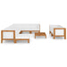 Dieses Garten-Lounge-Set kombiniert Stil und Funktionalität und ist die ideale Wahl, um sich zu entspannen und das Wetter zu genießen, ein Nickerchen zu machen oder mit Ihrer Familie oder Freunden zu plaudern. Aus massivem Akazienholz gefertigt, ist dieses Gartenmöbel-Set pflegeleicht, strapazierfähig und alltagstauglich. Das Möbel-Set hat eine solide Konstruktion und benötigt wenig Wartung. Der Tisch ist ideal, um Speisen und Getränke griffbereit aufzubewahren. Dank des Bezugs aus 100% Polyester und der dicken Polsterung sind die mitgelieferten Kissen weich und bieten höchsten Komfort. Dieses Lounge-Set ist außerdem leicht und modular, wodurch es vollständig flexibel und leicht an jede Umgebung angepasst werden kann. Sie können es mit anderen modularen Sofa-Elementen kombinieren, um Ihre persönlichen Garten-Lounge-Set-Konfigurationen zu erstellen! Hinweis: Um die Lebensdauer Ihrer Gartenmöbel zu verlängern, empfehlen wir Ihnen, diese regelmäßig zu reinigen und im Freien vor Niederschlägen oder starken Sonnenstrahlen zu schützen.Reinigung: Verwenden Sie eine milde Seifenlösung.Lagerung: Wenn möglich, an einem kühlen, trockenen Ort im Innenbereich lagern. Wenn das Produkt im Freien gelagert wird, schützen Sie es mit einer wasserdichten Abdeckung. Wischen und trocknen Sie das überschüssige Wasser oder den Schnee nach Regen oder Schneefall von ebenen Flächen. Sorgen Sie für eine ausreichende Luftzirkulation, um feuchtigkeitsbedingte Schäden zu vermeiden.