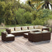 10-tlg. Garten-Lounge-Set mit Kissen Poly Rattan Braun