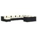 Genießen Sie eine entspannte Zeit mit Ihren Freunden und Ihrer Familie in Ihrem Außenbereich auf diesem klassischen Garten-Lounge-Set aus Poly-Rattan! Erstklassiges Material: Das Terrassen-Lounge-Set besteht aus wasserabweisendem und witterungsbeständigem PE-Rattan, sodass es sich einfach reinigen lässt, strapazierfähig ist und sich für den täglichen Gebrauch im Freien eignet.Stabiler Rahmen: Dieses Outdoor-Lounge-Set verfügt über einen stabilen, pulverbeschichteten Stahlrahmen und verchromte Kunststofffüße. Das alles sorgt für Stabilität und Langlebigkeit.Bequeme Kissen: Aus Stoff gefertigt, fühlen sich die dick gepolsterten und abnehmbaren Kissen weich an und bieten zusätzlichen Komfort.Modulares Design: Dieses Lounge-Set ist modular gestaltet und kennzeichnet sich durch ein geringes Eigengewicht. Es lässt sich auch flexibel in jeder beliebigen Anordnung aufstellen oder mit anderen modularen Elementen kombinieren, um Ihren Bedürfnissen gerecht zu werden. Hinweis:Um die Lebensdauer deiner Gartenmöbel zu verlängern, empfehlen wir dir, sie mit einer wasserdichten Hülle zu schützen.