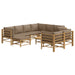 Genieße eine Tasse Kaffee oder Tee bei schönem Wetter in deinem Außenbereich mit diesem eleganten Garten-Lounge-Set aus Bambus! Langlebiges Material: Bambus ist für seine Flexibilität und Festigkeit bekannt. Bambus-Möbel sind eine gute Wahl, wenn du nach robusten Gartenmöbeln aus natürlichen Materialien suchst.Bequemes Sitzgefühl: Dank der Rückenlehne und der Armlehnen bietet das Gartensofa höchsten Sitzkomfort. Zum hohen Sitzkomfort tragen auch die dick gepolsterten Sitz- und Rückenkissen bei.Praktischer Tisch: Der robuste Tisch bietet den perfekten Platz für Speisen, Getränke und verschiedene Dekoartikel.Modularer Aufbau: Das Loungemöbel-Set ist flexibel und leicht zu umstellen, so dass du es mit anderen modularen Sofateilen im Webshop kombinieren kannst, um dein eigenes persönliches Outdoor-Lounge-Set zu erstellen! Hinweis:Damit deine Gartenmöbel lange schön bleiben, empfehlen wir dir, sie mit einer wasserdichten Hülle zu schützen.Gut zu wissen:Um die Montage so einfach wie möglich zu machen, wird jedes Produkt mit einer Anleitung geliefert.