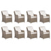 Unser Gartenmöbel-Set aus Poly Rattan wurde mit einem eleganten Design entworfen, das es zu einer idealen Wahl für Speisen im Freien oder zum Entspannen im Garten oder auf der Terrasse macht! Mittlerweile gibt es auch zwei Sonnenliegen mit verstellbaren Rückenlehnen, die Ihnen zusätzlichen Plätze zum Entspannen und Genießen des Außenbereiches bieten. Das Gartenmöbel-Set ist mit einem stabilen, pulverbeschichteten Stahlrahmen ausgestattet, der es sehr stabil und langlebig macht. Dank des witterungsbeständigen PE-Rattans ist die Essgruppe leicht zu reinigen, strapazierfähig und für den täglichen Außeneinsatz geeignet. Die Tischplatte aus massivem Akazienholz lässt sich auch leicht mit einem feuchten Tuch reinigen. Darüber hinaus sorgen die mitgelieferten weichen Sitzkissen für zusätzlichen Komfort. Die pflegeleichten Kissenbezüge aus Polyester können leicht abgenommen und gewaschen werden. Bitte beachten Sie, dass wir empfehlen, das Set bei Regen, Schnee und Frost abzudecken.