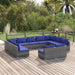 11-tlg. Garten-Lounge-Set mit Kissen Grau Poly Rattan
