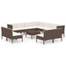 Schaffen Sie mit diesem Garten-Lounge-Set einen auffälligen und entspannenden Lounge-Bereich, von dem Sie schon immer geträumt haben. Auf diesem Gartenmöbel-Set können Sie mit Ihrer Familie und Ihren Freunden einen entspannten, sonnigen Nachmittag oder Sommerabend genießen! Dank des witterungsbeständigen PE-Rattans lässt sich dieses Garten-Lounge-Set leicht reinigen und pflegen. Das pulverbeschichtete Stahlgestell macht die Gartenmöbel stabil und robust. Mit dicken und weichen Auflagen versehen, bietet diese Garten-Sofagarnitur höchsten Sitzkomfort. Dabei können die pflegeleichten Polyesterbezüge abgenommen und gewaschen werden. Dank seines leichten und modularen Aufbaus lässt sich dieses Möbelset auch problemlos umstellen. Hinweis: Um die Lebensdauer Ihrer Gartenmöbel zu verlängern, empfehlen wir Ihnen, diese regelmäßig zu reinigen und im Freien vor Niederschlägen oder starken Sonnenstrahlen zu schützen.Reinigung: Verwenden Sie eine milde SeifenlösungLagerung: Wenn möglich, an einem kühlen, trockenen Ort im Innenbereich lagern. Wenn das Produkt im Freien gelagert wird, schützen Sie es mit einer wasserdichten Abdeckung. Wischen und trocknen Sie das überschüssige Wasser oder den Schnee nach Regen oder Schneefall von ebenen Flächen. Sorgen Sie für eine ausreichende Luftzirkulation, um feuchtigkeitsbedingte Schäden zu vermeiden.