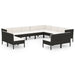 12-tlg. Garten-Lounge-Set mit Auflagen Poly Rattan Schwarz