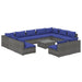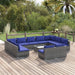 12-tlg. Garten-Lounge-Set mit Kissen Grau Poly Rattan