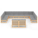 12-tlg. Garten-Lounge-Set mit Kissen Kiefer Massivholz