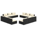 Genießen Sie eine entspannte Zeit mit Ihren Freunden und Ihrer Familie in Ihrem Außenbereich auf diesem Garten-Lounge-Set aus Poly-Rattan! Modulares Design: Das modulare Design ermöglicht es, die Sessel in beliebiger Anordnung zu platzieren oder mit anderen modularen Sofa-Elementen zu kombinieren, um Ihren Bedürfnissen gerecht zu werden!Erstklassiges Material: Das Terrassen-Lounge-Set besteht aus wasserabweisendem PE-Rattan, wodurch es strapazierfähig und für den täglichen Gebrauch im Freien geeignet ist.Stabiler Rahmen: Dieses Outdoor-Lounge-Set verfügt über einen stabilen, pulverbeschichteten Stahlrahmen und verchromte Kunststofffüße, was es langlebig macht. Dank seiner Leichtbauweise lässt es sich auch einfach umstellen.Komfortable Kissen: Aus Stoff gefertigt, fühlen sich die dick gepolsterten und abnehmbaren Kissen weich an und bieten zusätzlichen Komfort. Hinweis:Um die Lebensdauer deiner Gartenmöbel zu verlängern, empfehlen wir dir, sie mit einer wasserdichten Hülle zu schützen.